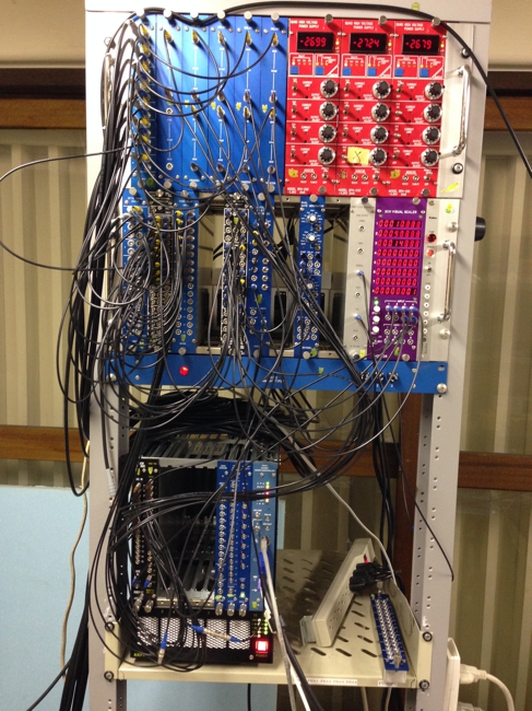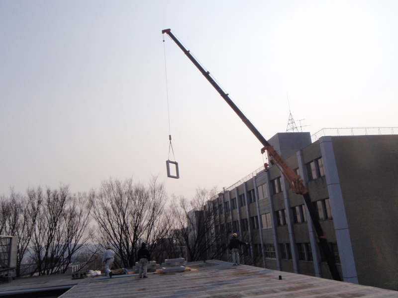 横浜キャンパス6号館屋上に設置された宇宙線観測装置。高エネルギー宇宙線が地球大気に突入して起こす核及び電磁相互作用によって生じる電荷を持った粒子群(空気シャワー)を測定する装置で「空気シャワーアレイ」とも言う。 検出器の種類 プラスチック・シンチレーション検出器 サイズ 0.5m2 (シンチレーターのサイズ:70cm x 70cm) チャンネル数 9チャンネル 検出面積 およそ170m2 検出エネルギー およそ10の15乗エレクトロンボルト以上(>10^15 eV) プラスチック・シンチレーター 検出器外観 設置作業の様子#1 設置作業の様子#2 設置作業の様子#3 データ収集システム CAMAC&NIMによるデータ収集システム。 モニタリングページ(学内のみ)