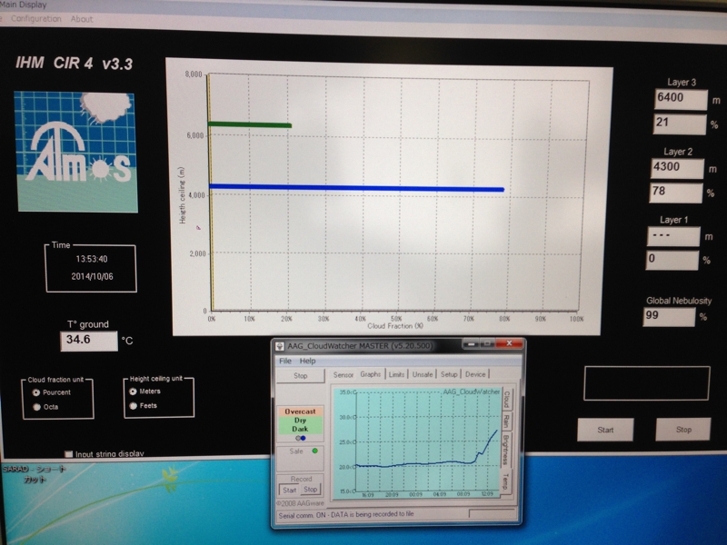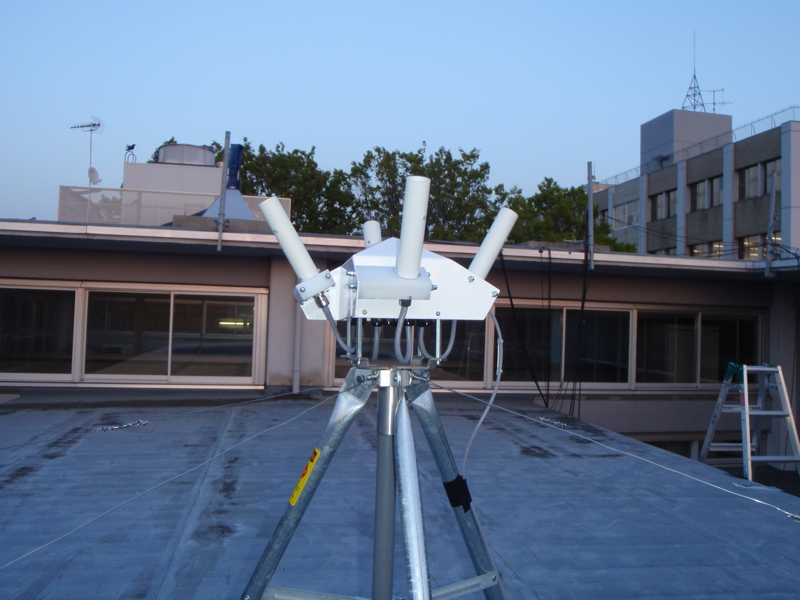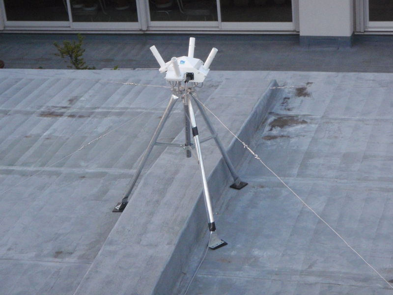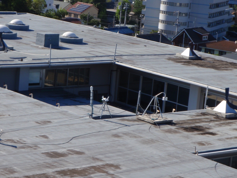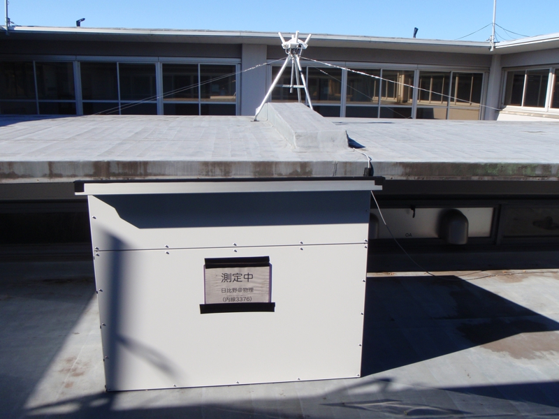 横浜キャンパス6号館屋上に設置された雲量および雲高を測定する装置。この装置により、雲と宇宙線との間の相関などを研究している。 検出器の種類 CIR4:赤外放射型雲センサー サイズ 220 x 230 x 440 mm チャンネル数 1チャンネル 雲量 範囲:0〜100%、精度:±6% 雲高 範囲:0〜8,000m、精度:±200m 雲量・雲高計全景 雷γ線検出器小屋と雲量・雲高計 7号館から見た雲量・雲高計など データ収集システム Windows PCによるデータ収集システム。 モニタリングページ(準備中)