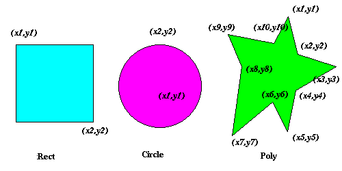 default URL circle (x,y) r URL rectangle (x,y) (x,y) URL polygon (x1,y1) (x2,y2) ... (xN,yN) URLNCSA WWWサーバとは異なり、座標を括弧で括ります。また、名前が若干異なり ます。